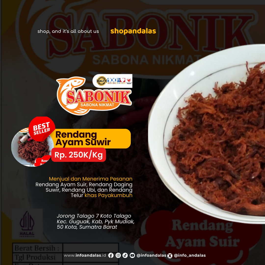 Jadilah yang pertama memberikan ulasan “Sabonik Rendang Ayam Suwir”