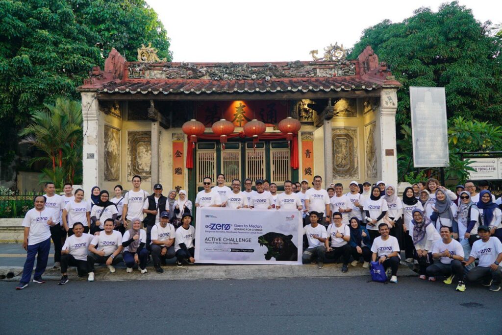Para peserta mengikuti kegiatan jalan santai sambil mengumpulkan dan memilah sampah plastik yang dimulai dari kantor Telkom Regional 1 dan mengitari kawasan Car Free Day Lapangan Merdeka Medan. Pada kesempatan ini, hadir Plt. Kepala Dinas Kominfo Provinsi Sumatera Utara Porman Juanda Marpomari Mahulae, S.T., M.Si., yang menyampaikan apresiasinya terhadap penyelenggaraan rangkaian kegiatan GoZero% Goes to Medan. Ia menilai kegiatan ini sebagai inisiatif positif yang diharapkan dapat terus berlanjut dan menjadi pemicu bagi lebih banyak pihak untuk bersama-sama berkontribusi dalam upaya pelestarian lingkungan. Turut hadir SVP Group Sustainability and Corporate Communication Telkom Ahmad Reza, EVP Telkom Regional 1 Dwi Pratomo Juniarto, dan VP Sustainability Telkom Gunawan. GoZero% Active Challenge & Clean-Up Walk merupakan salah satu bentuk konkret Telkom dalam menginternalisasi semangat keberlanjutan ke seluruh aspek kegiatan perusahaan.